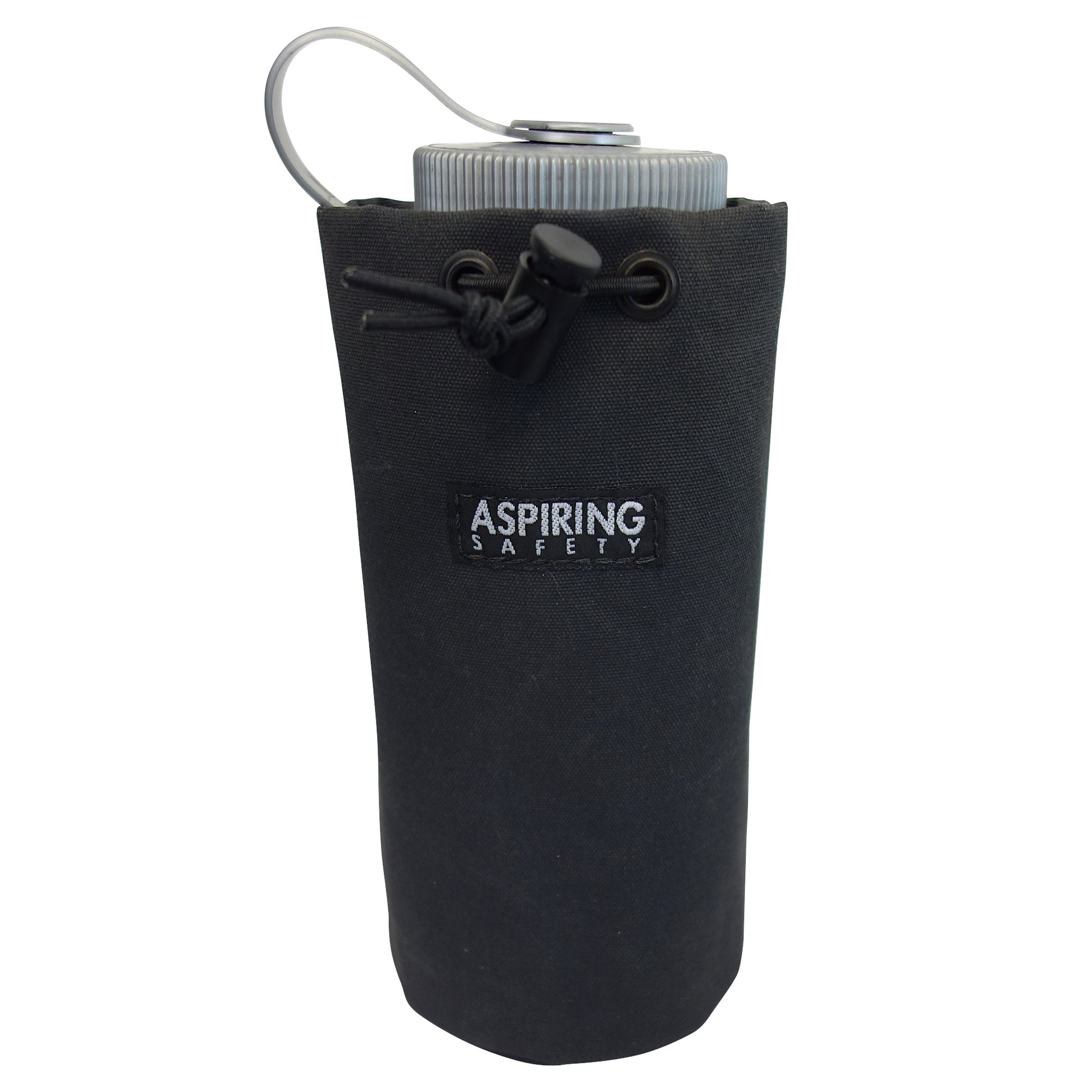 A rugged canvas drink bottle holder with an elasticated closure and belt loop.