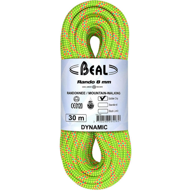 This rope also features a Golden Dry treatment of the core plus a Dry Cover sheath to provide more resistance to ice and water and reduced weight gain in wet conditions as well as better resistance to abrasion, dust and water.