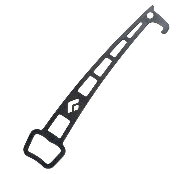 Free fixed nuts, retrieve deeply buried cams and crack open a cold one after a long day of cragging with the simple yet highly functional Black Diamond Nut Tool. With an angled hook on one end and a bottle-opener clip-in point on the other, the Nut Tool is an essential part of any trad rack.