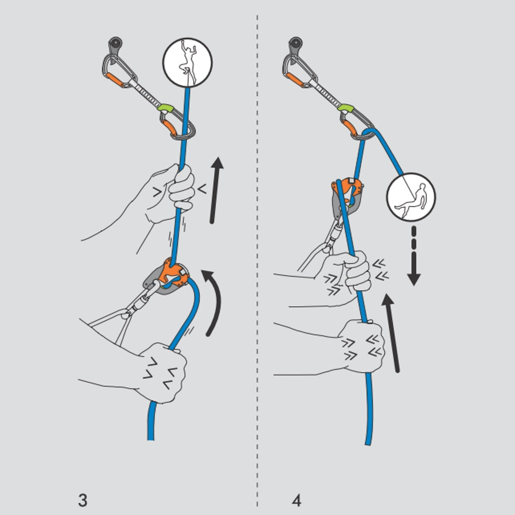 - it allows the belayer to lower the partner off by applying a slight pressure over the device, while keeping under tension the free end of the rope with the braking hand,