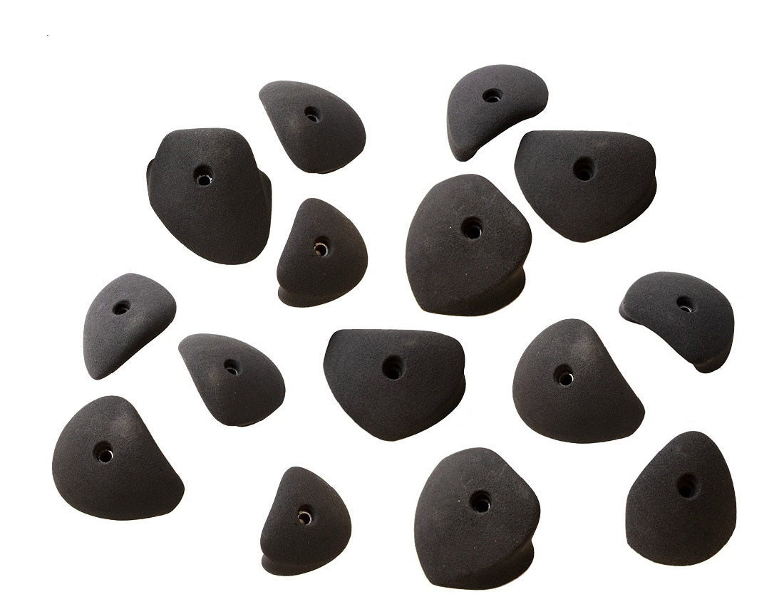 Bryce’s take: Very popular, user friendly, virtually anyone can use these holds. Various sized packs. Each pack is a random selection of grey jugs and includes all hardware.