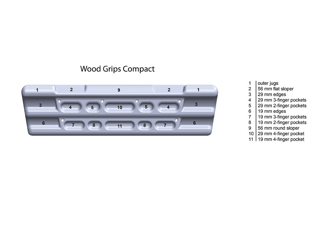Super skin-friendly wooden training board that looks great in any room. Large assortment of holds including jugs, slopers, edges and pockets.