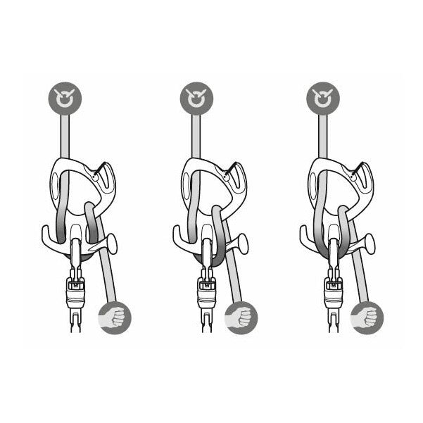 - Three rope installation options allow you to select the degree of friction before initiating a descent